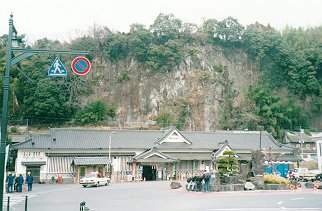 背後に大きな崖を背負った豊肥本線の駅です。目の前には川が流れています。